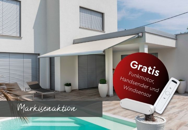 Jetzt Markisenaktion sichern – mit kostenlosem Komfort-Paket auf ausgewählte Markisen!