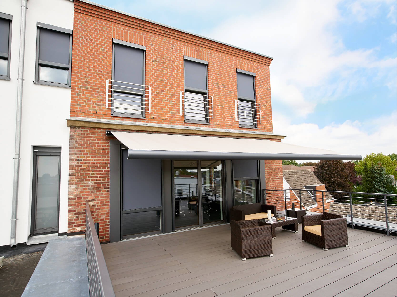- Für Fenster und Wintergärten als Sonnen-, Blende-, Sicht- und Hitzeschutz und zur Regulierung des Raumklimas (für Neubau, Nachrüstung und Renovierung)