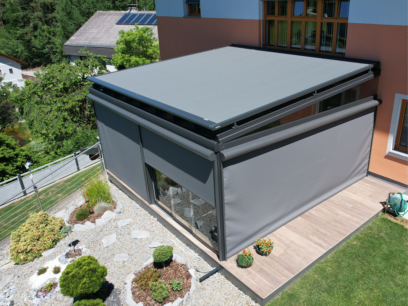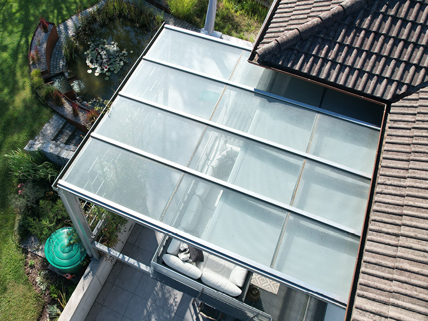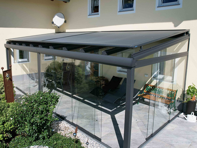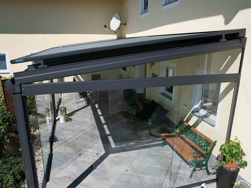 Glasdach mit gekoppelter Aufglasmarkise, Bezirk Schärding