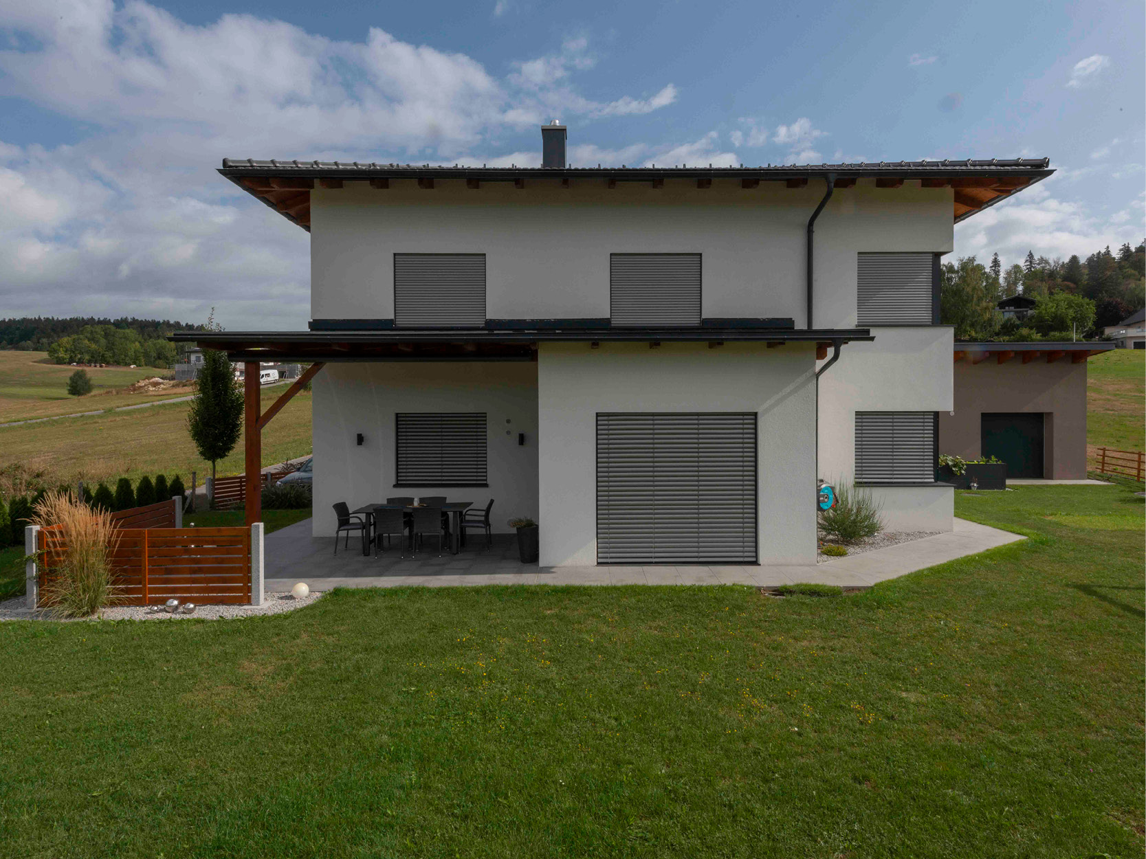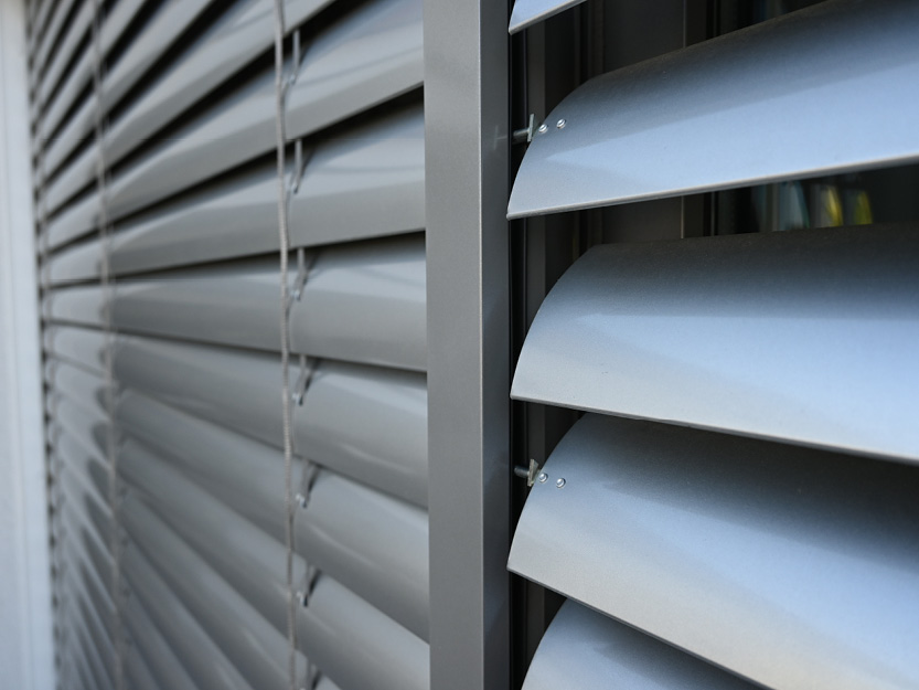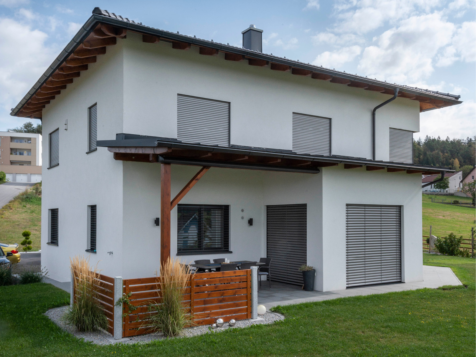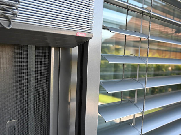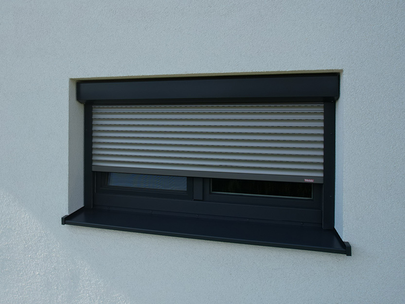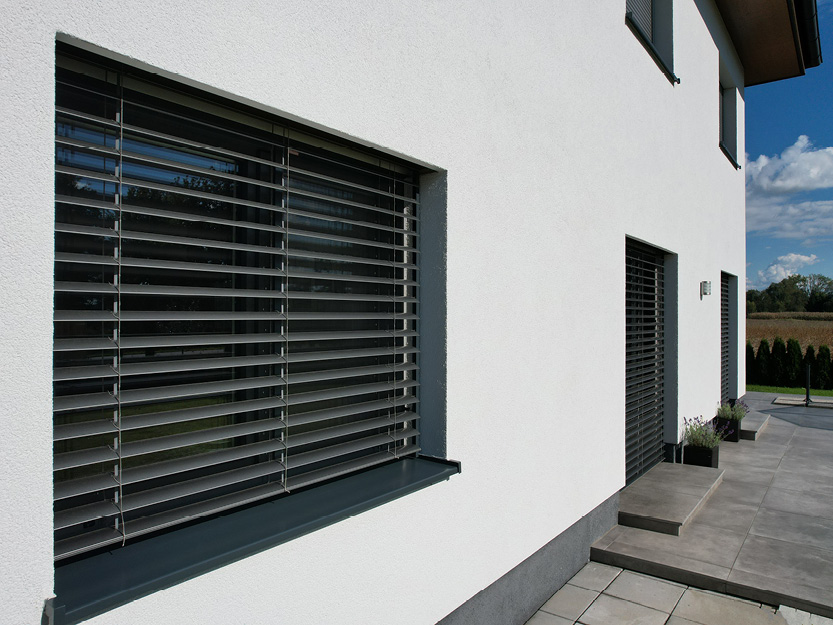 Verbaute Produkte: Raffstore 80 gebördelt in graualuminium | Rollläden Alu M317 ausgeschäumt in RAL 9007 graualuminium| Führungsschienen Raffstore: VL 2 mit Abstandhalter in RAL 7016m anthrazitgrau | Führungsschienen Rollladen: A20 und A3 in RAL 7016m anthrazitgrau | Endleistenfarbe: RAL 9007 graualuminium | Insektengitter Spannrahmen | Insektengitter-Rollo