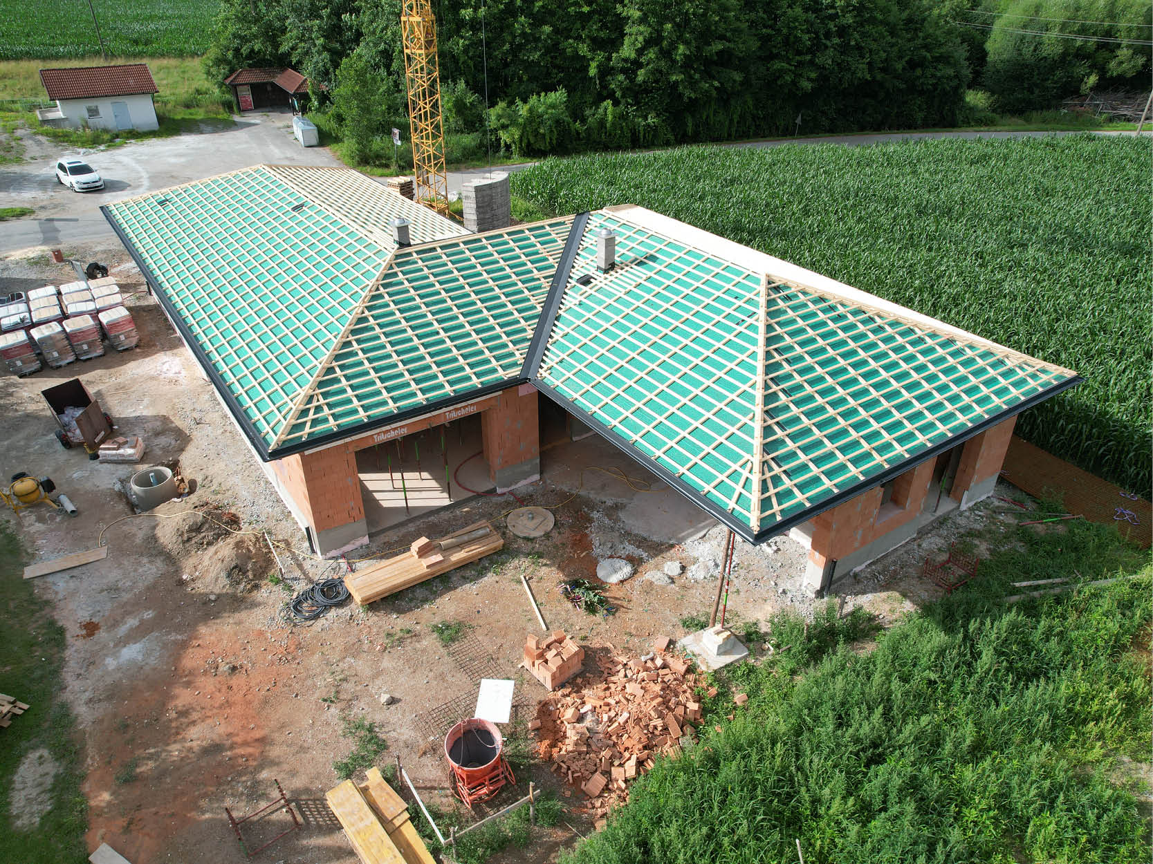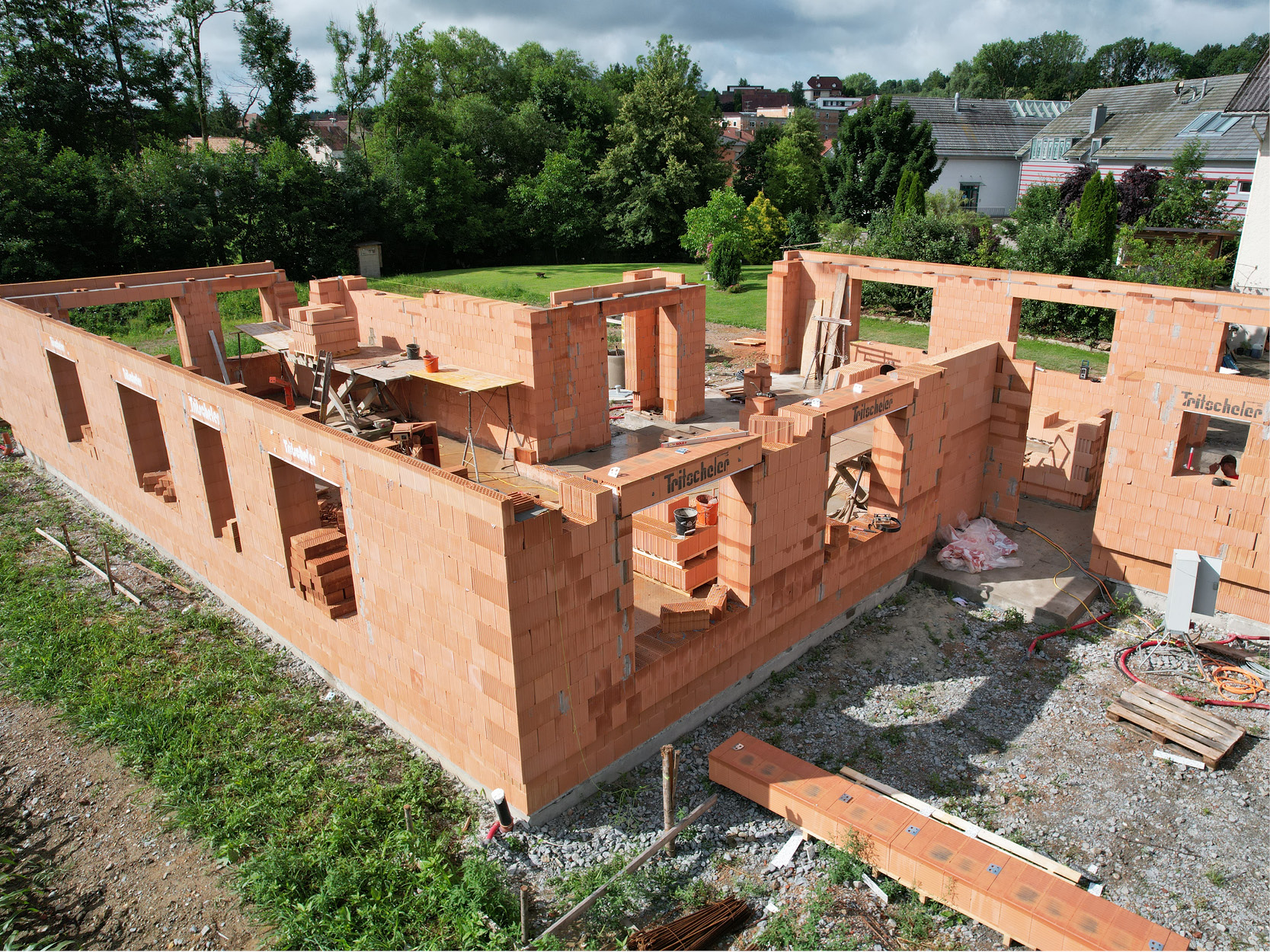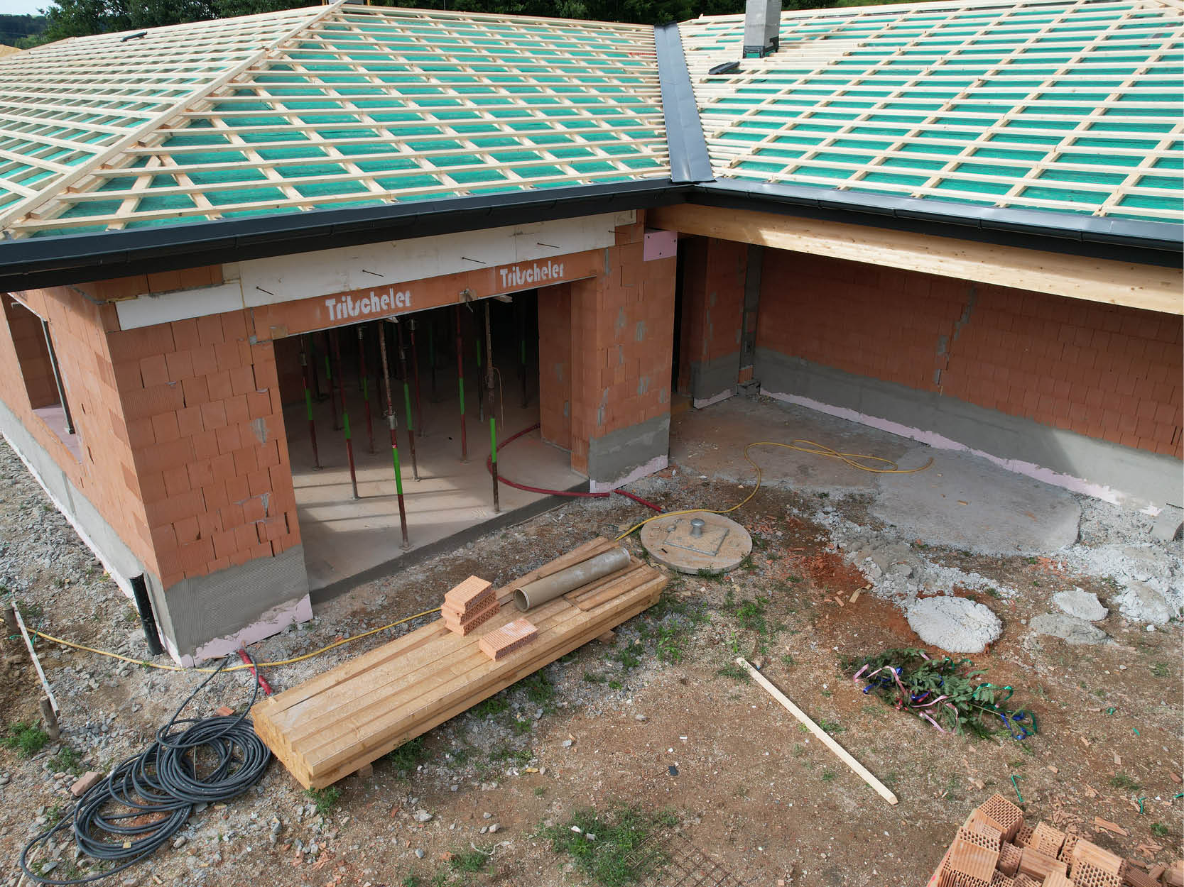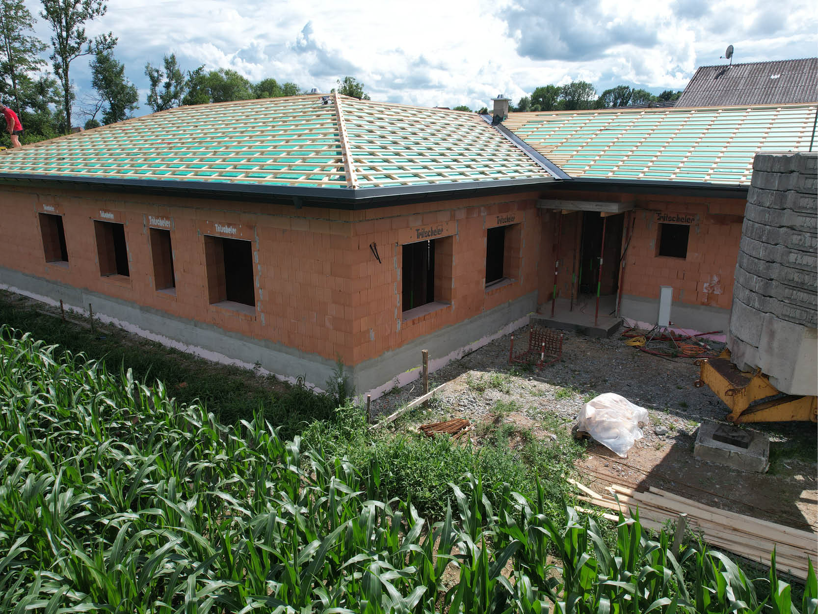 Verbaute Produkte: Thermoton Ziegel-Rollladenkasten Mauerstärke 50 cm | Raffstore Lamellen gebördelt 80 mm weißaluminium | Rollladen Alu ausgeschäumt naturell | Insektengitter