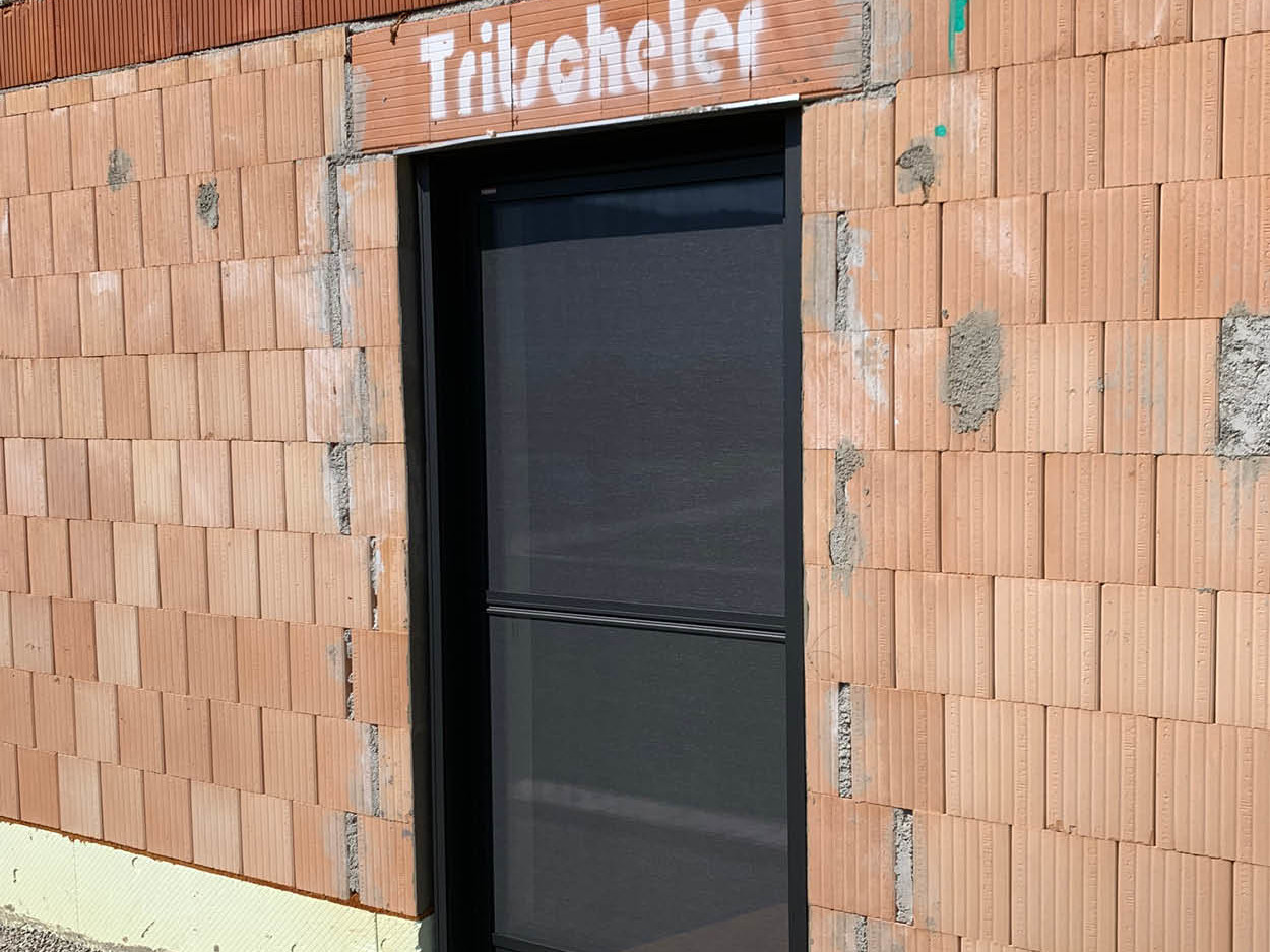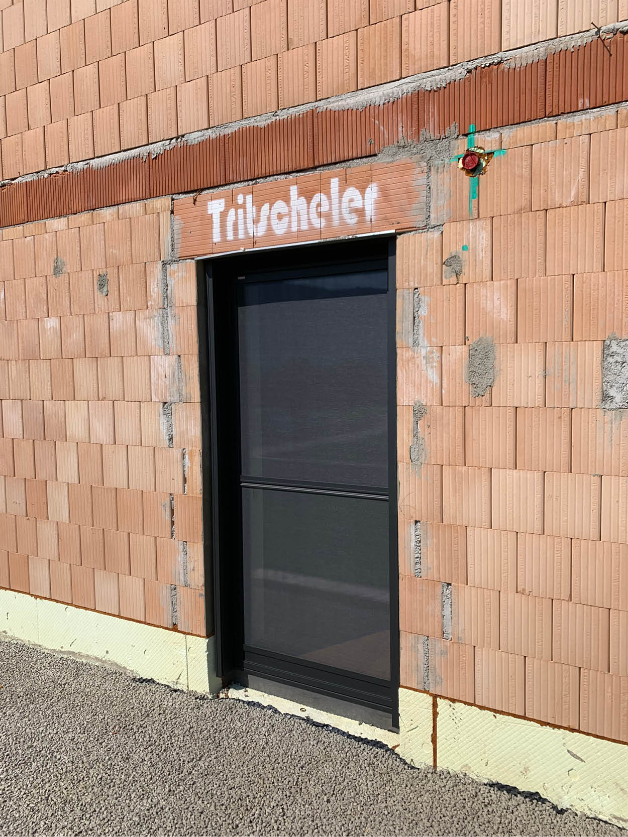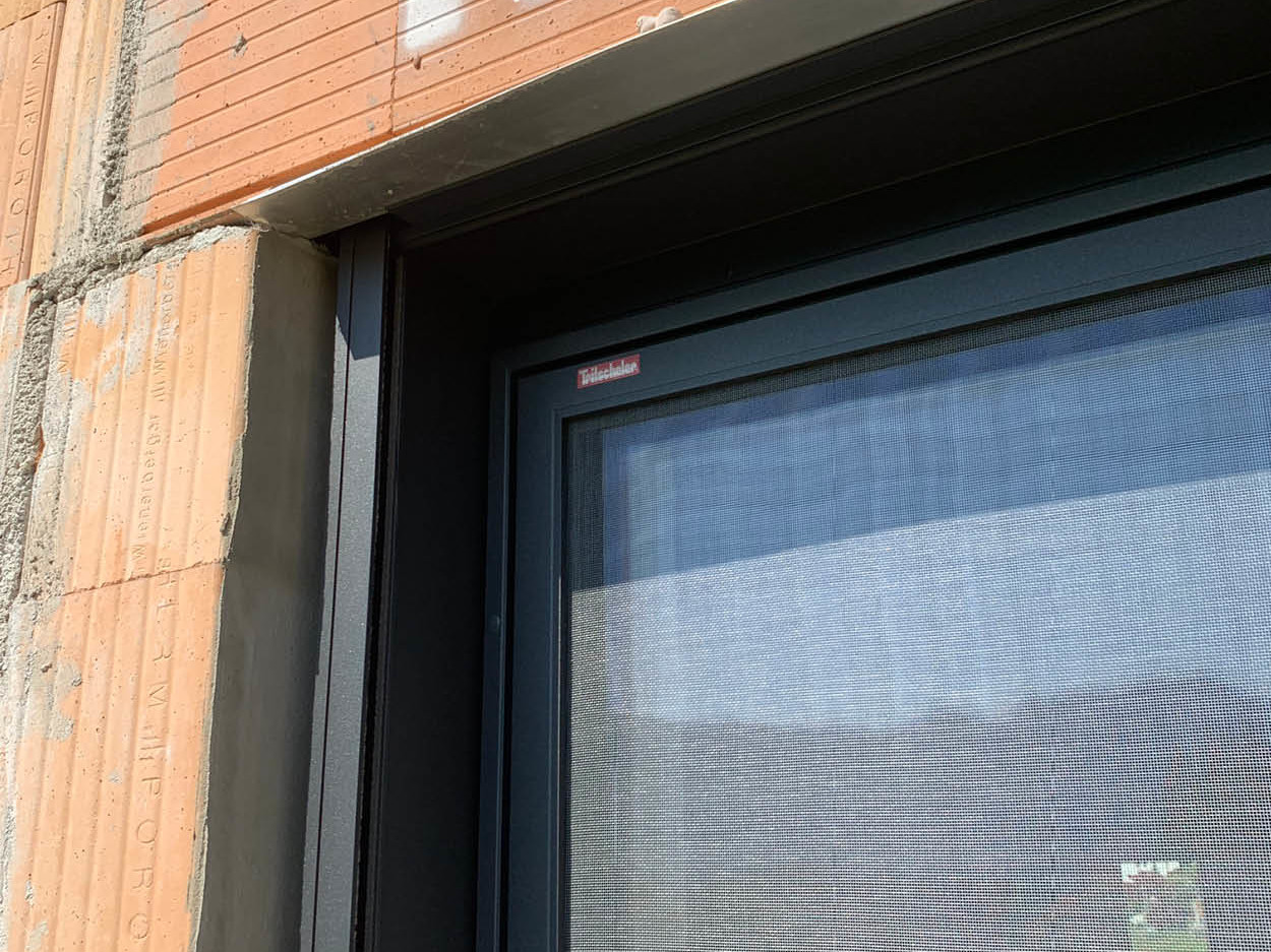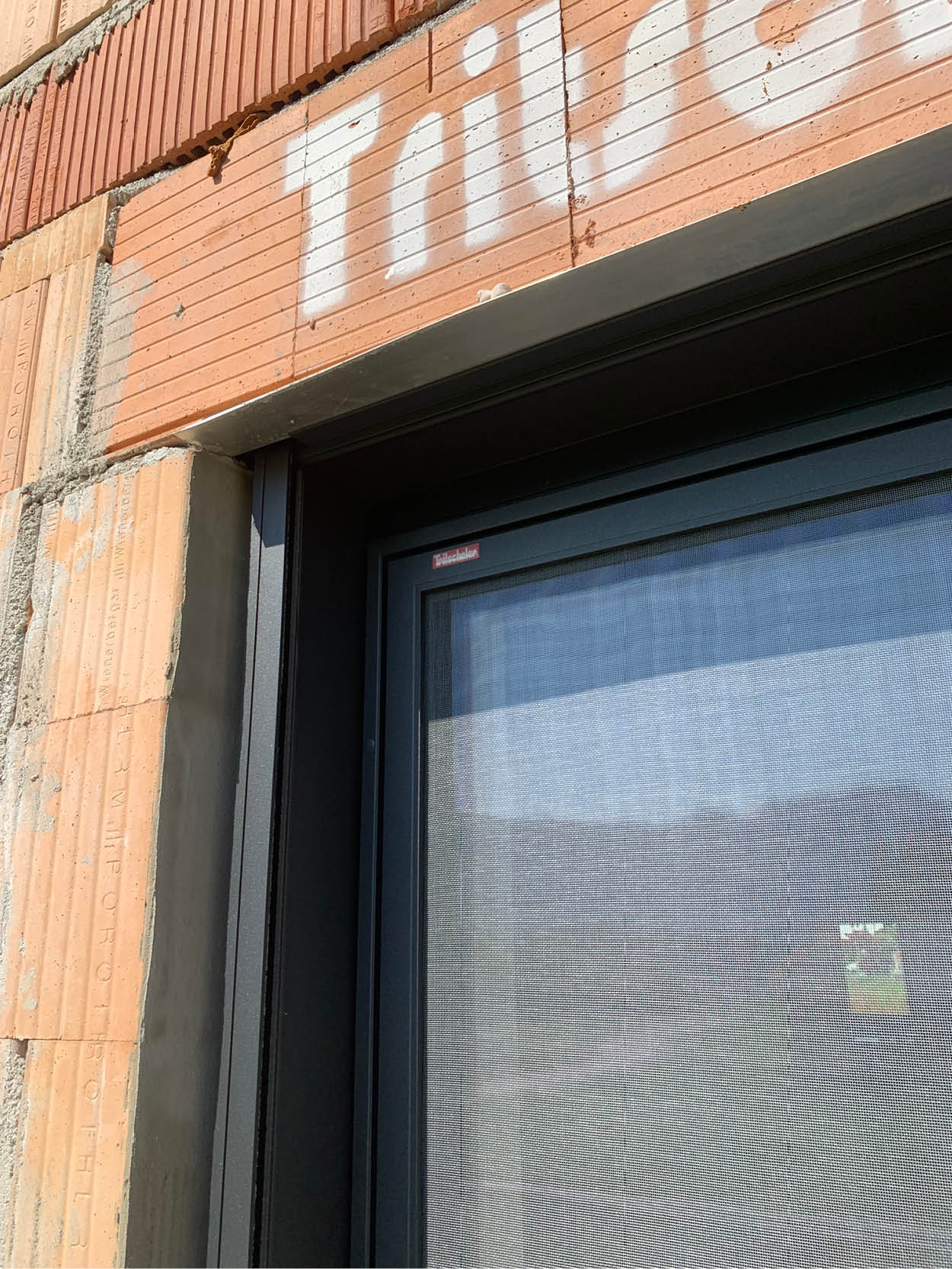 Verbaute Produkte: Thermoton Ziegelrollladenkasten Mauerstärke 50 cm | Rollladen Alu ausgeschäumt M521 graualuminium | Insektengitter Schiebelement, Drehrahmen und Spannrahmen