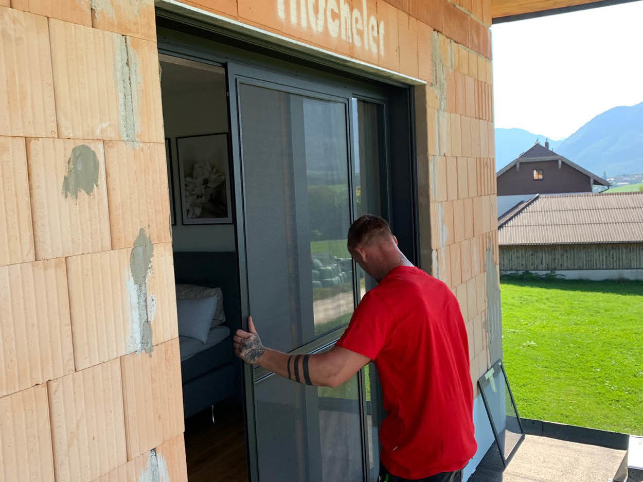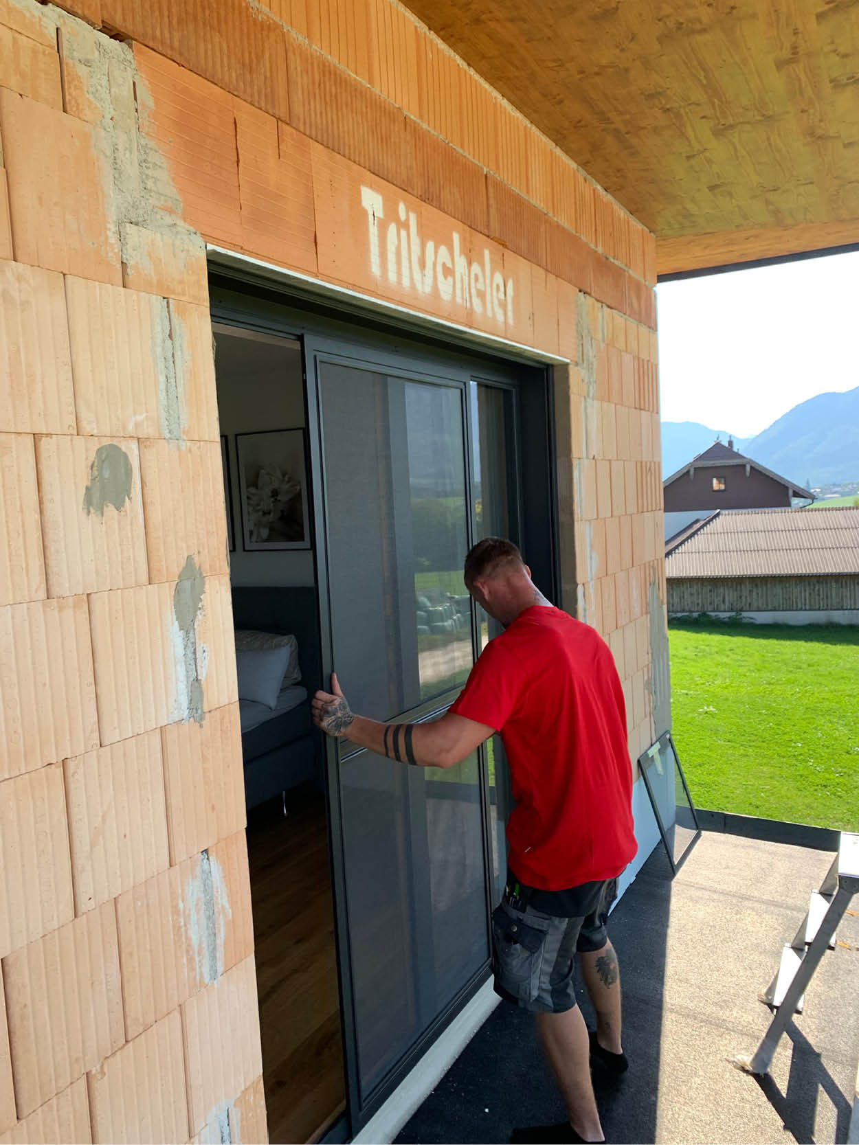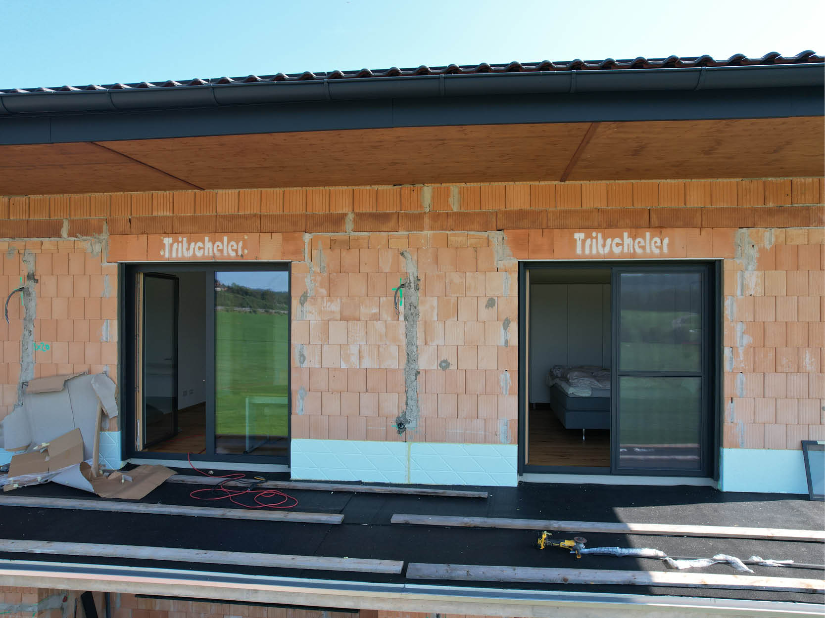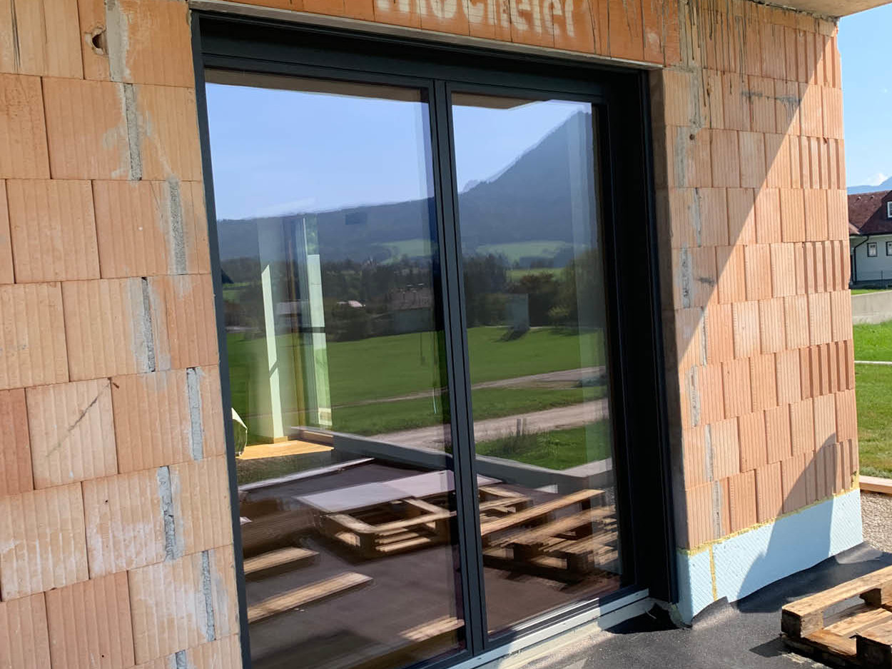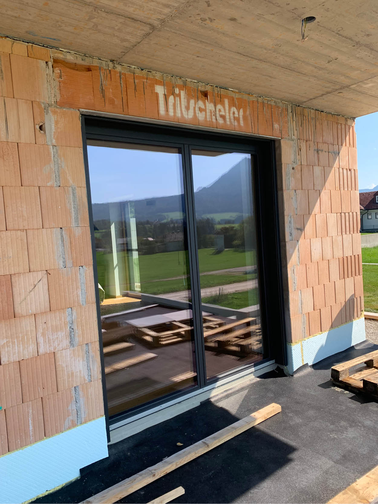 Verbaute Produkte: Thermoton Ziegelrollladenkasten Mauerstärke 50 cm | Rollladen Alu ausgeschäumt M521 graualuminium | Insektengitter Schiebelement, Drehrahmen und Spannrahmen